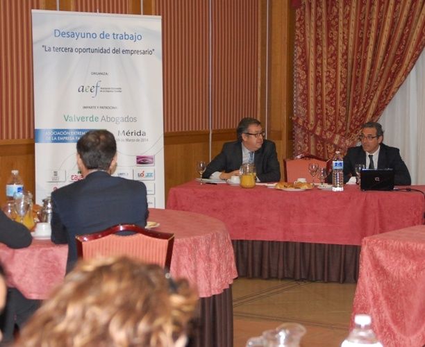 Mérida – Hotel Las Lomas · Fecha: 30/01/2014 · Horario: 09:30 h. El día 30 de enero dio comienzo las actividades de la AEEF para el año 2014 con el desayuno de trabajo “Volver a emprender: El nuevo entorno legal”, impartido por D. Angel Valverde y Dª Ana Barón, socios directores de VALVERDE ABOGADOS, entidad…