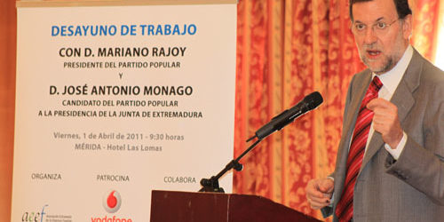 El pasado día 1 de abril la Asociación Extremeña de la Empresa Familiar (AEEF) celebró un desayuno de trabajo con el Presidente del Partido Popular, D. Mariano Rajoy, y el candidato del PP a la presidencia de la Junta de Extremadura, D. José Antonio Monago.